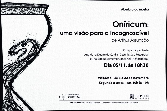 Sonhos são como poesias visíveis na tela da mente, pontes entre o mundo exterior e o mundo interior. A materialização desse elemento é o que o público pode conferir na mostra “Oníricum: uma visão para o incognoscível”, do artista plástico Arthur Assunção, novidade da Galeria de Arte do Forum da Cultura da Universidade Federal de Juiz de Fora (UFJF). A abertura da exposição é nesta terça-feira, 5, a partir das 18h30. Os trabalhos ficam expostos até 22 de novembro e a entrada é gratuita.