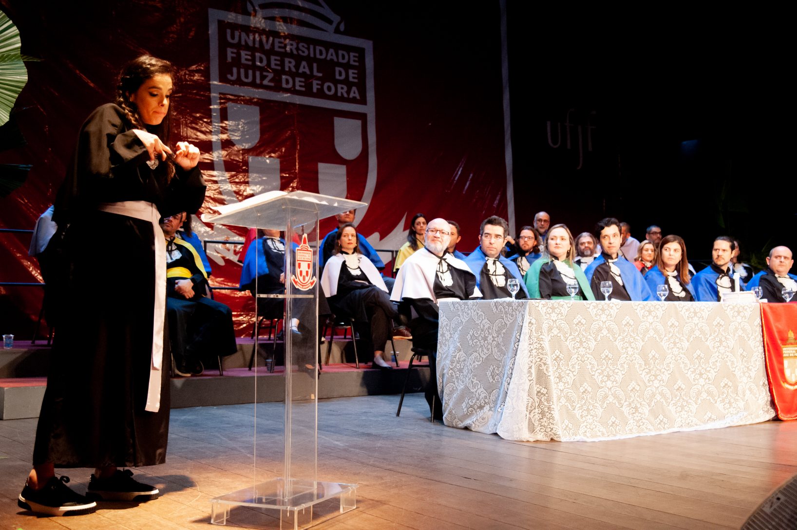 Ato de colação de grau do vice-reitor da UFJF, Telmo Ronzani com formanda