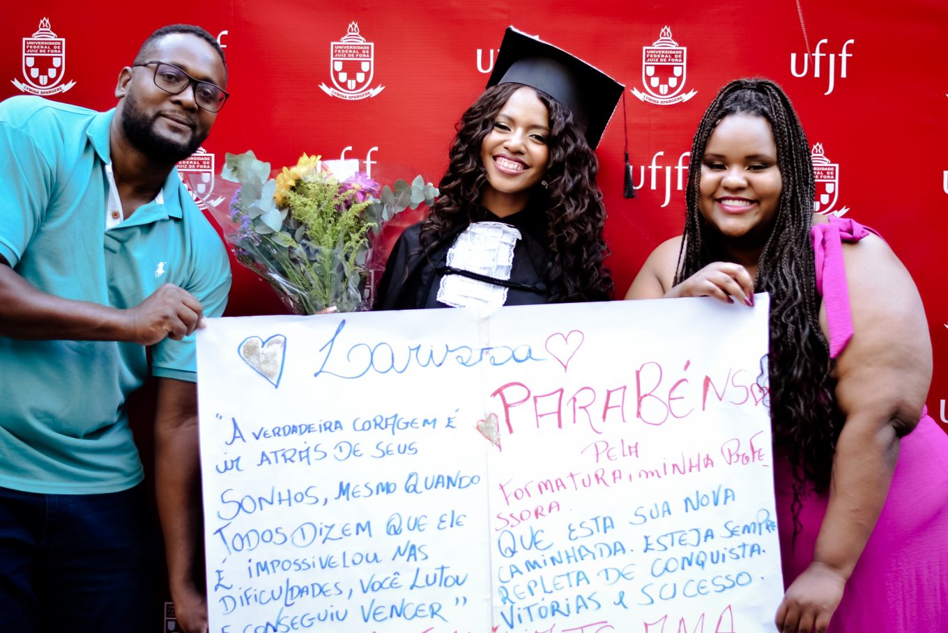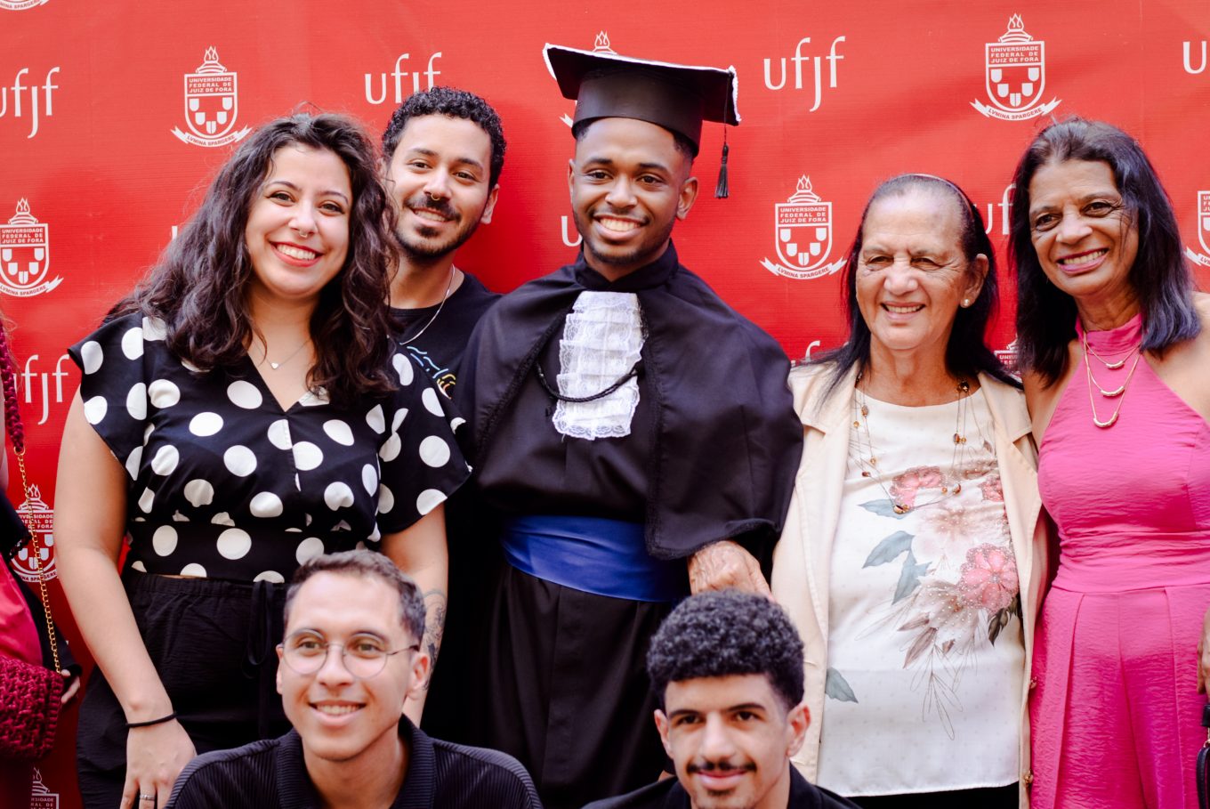Estudante e seus familiares momentos antes da cerimônia. Foto: (Alexandre Dornelas)