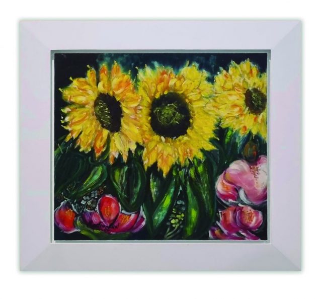 Telas como “Vitória Régia – Pantanal” e “Girassóis” revelam as belezas da natureza em uma miscelânea de tons e camadas de tintas vivazes. Já a obra “Paisagem” transporta os visitantes até à pequena cidade de Aiuruoca (MG), apresentando algumas das montanhas mais emblemáticas da localidade.