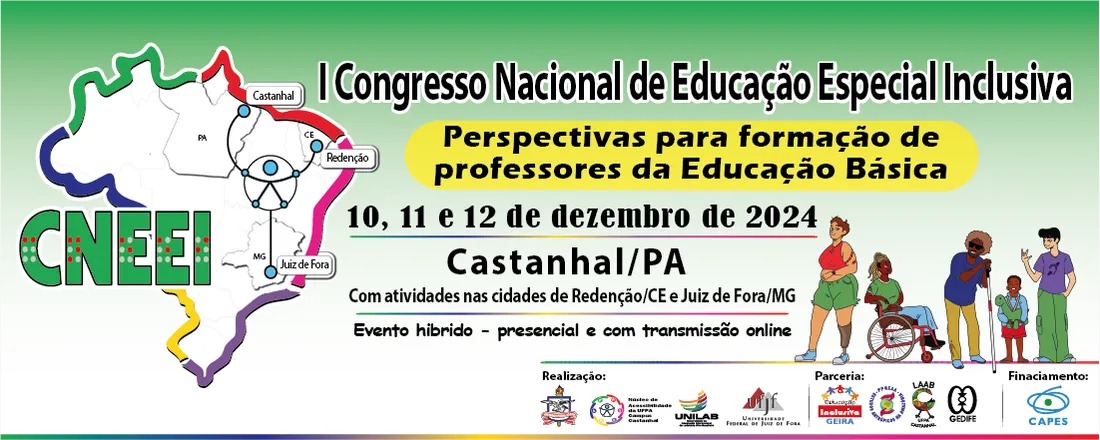 Ficam abertas até este sábado, 30, as inscrições para o 1º Congresso Nacional de Educação Especial Inclusiva (Cneei), que tem como tema “Perspectivas para formação de professores da Educação Básica”. O evento acontece nos dias 10, 11 e 12 de dezembro, com atividades nas cidades de Castanhal (PA), Redenção (CE) e no campus sede da Universidade Federal de Juiz de Fora (UFJF), em Juiz de Fora. Os interessados podem se inscrever em três modalidades: híbrido, presencial ou on-line.