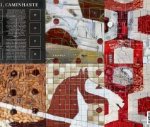 A ideia do livro de artista é que cada exemplar seja uma obra de arte. Por isso, o álbum, uma espécie de mapa dobrável, terá imagens do Coletivo Agrupa, de estudantes e professores de arte da UFJF, recriando mosaicos e murais característicos de Juiz de Fora, como os de Portinari, Di Cavalcanti e Guima. Esses mosaicos foram produzidos em rede, durante a pandemia, período no qual foram capturadas a maioria das fotos do livro, entre 2020 e 2023. “Vai, caminhante” é o desdobramento de uma primeira edição artesanal, homônima, publicada, em julho de 2022, pela Sala da Casa, com edição da jornalista Mariana Bretas e projeto da arte-educadora Nathalia Serra. A arte do livro e das projeções em cartaz é de Ricardo Lima.