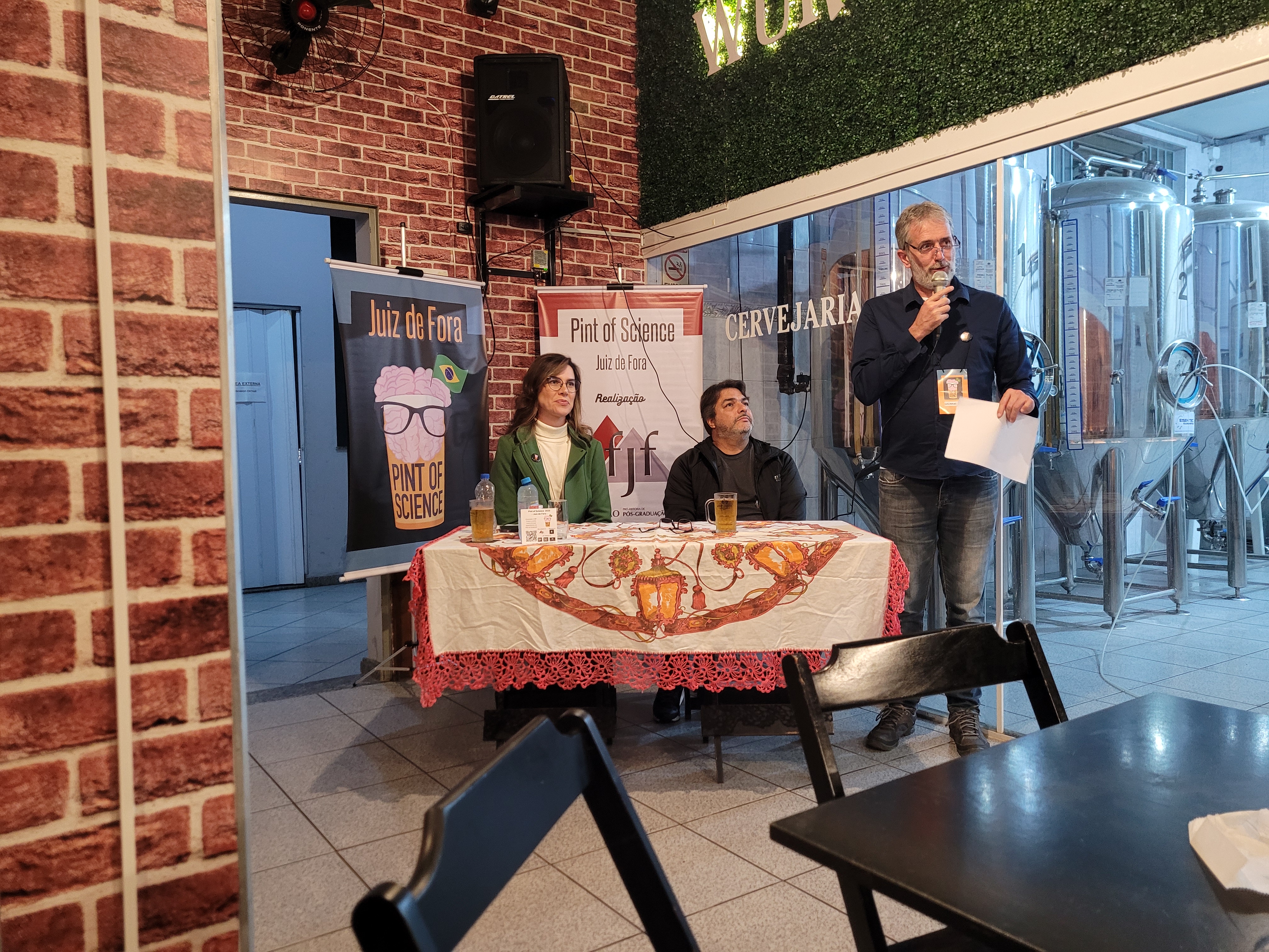 Na Cervejaria Württemberg, o tema foi sobre “Desinformação e Memória: quem ganha com o esquecimento?” (Foto: Marcella Victer/UFJF)