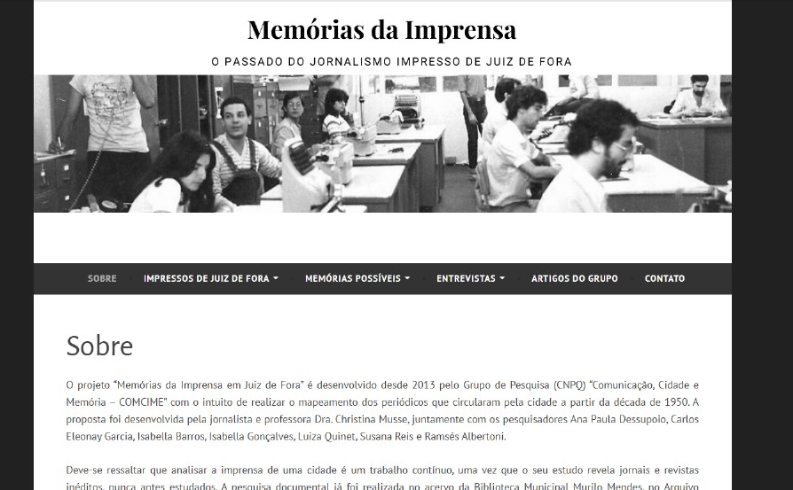 Outro projeto importante do grupo é o site “Memórias da Imprensa em Juiz de Fora”, resultado de uma ampla pesquisa em acervos públicos e privados. O portal reúne sinopses e exemplares de veículos de comunicação impressos, além de entrevistas com jornalistas que contribuíram para a história da imprensa local.