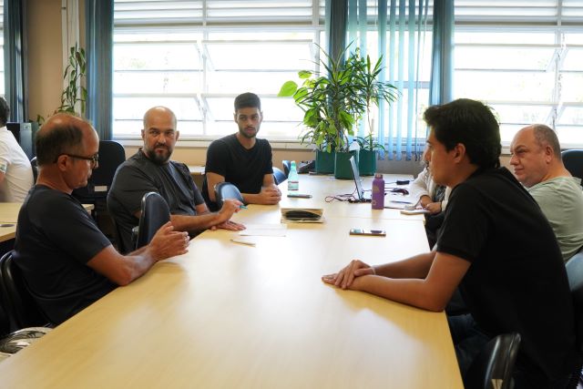 Reunião entre equipes da Diretoria de Imagem Institucional e do Laboratório de Telecomunicações da UFJF para discutir etapas de implantação da Rádio UFJF (Foto: Leandro Mockdece/UFJF)
