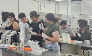 A estadia dos discentes no campus GV incluiu um curso no Laboratório de Microbiologia, que contou com apresentação teórica e realização de experimentos para a detecção de genes de resistência, além de uma visita ao Restaurante Universitário (RU).