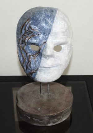 Além de quadros, a mostra também conta com esculturas produzidas em materiais diversos, entre eles, cimento, massa acrílica e biscuit. Muitas das peças são figurativas e representam máscaras, como é o caso da que referencia o romance “O Fantasma da ópera”, famoso por suas adaptações para musicais e filmes.