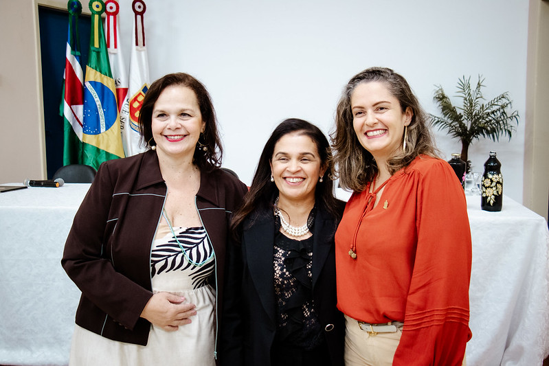 Da esquerda para a direita: a nova diretora da Faculdade de Letras, Nícea Helena Nogueira; a reitora da UFJF, Girlene Alves; e a vice-diretora da Unidade, Fernanda Cunha (Foto: Carolina de Paula/UFJF)(Foto: Carolina de Paula/ UFJF)