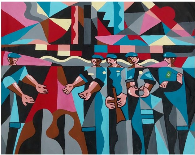 Para a criação de seus quadros, o artista revia os registros visuais e com o pincel os convertia em arte. “Peguei imagens da invasão em Brasília e usei os trabalhos de Di Cavalcanti como maior referência, estudando seus personagens e estilo. Seu trabalho ‘As Mulatas’ foi esfaqueado nesta invasão, por isso decidi me focar neste pintor e sua obra emblemática, que fala de um Brasil cheio de esperanças e que valoriza sua cultura”, relembra.
