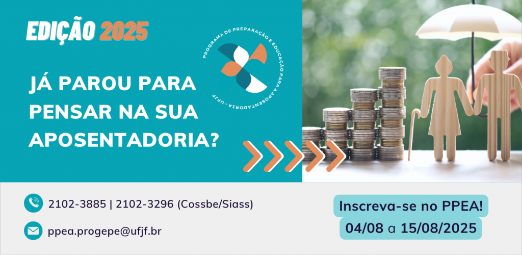 Informações: pelo telefone (32) 2102-3885/3296 ou pelo e-mail ppea.progepe@ufjf.br