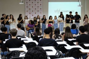 “Eles puderam buscar entre si uma canção que remetesse a um momento importante em suas vidas, que foi quando receberam a notícia de que iriam estudar na UFJF-GV”, explicou Lúcia. “Eles se mobilizaram no momento, junto com os demais colegas, para organizar toda essa dinâmica e fazer a apresentação musical que abriu o nosso evento”.