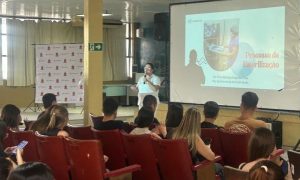 A palestra de Érica Silva foi sobre esterilização e manuseio de instrumentos. (Imagem: Sibele Aquino)