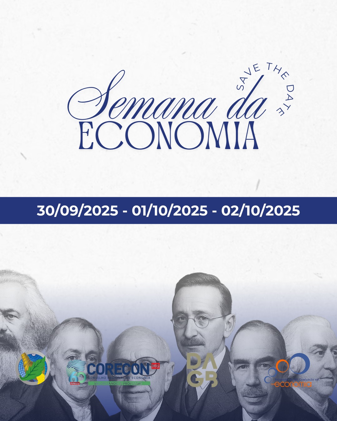 A programação, que se estende até 2 de outubro, inclui palestras, rodas de conversa e momentos comemorativos, sempre a partir das 19h. O evento é aberto ao público, sem necessidade de inscrição prévia, e reúne especialistas externos e da comunidade acadêmica para refletir sobre a conjuntura econômica, o mercado de trabalho, os desafios da economia brasileira e local, as políticas públicas e as tendências atuais.