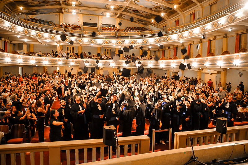 Nesta semana, entre os dias 6 e 8 de outubro, o Cine-Theatro Central recebeu as cerimônias de Colação de Grau Unificada da Universidade Federal de Juiz de Fora (UFJF), reunindo centenas de formandos de diferentes cursos. Durante os três dias, o palco histórico do teatro se encheu de emoção, com a presença da reitora Girlene Alves, do vice-reitor Telmo Ronzani, além de diretores e coordenadores dos cursos, que acompanharam de perto esse marco na trajetória acadêmica dos estudantes.