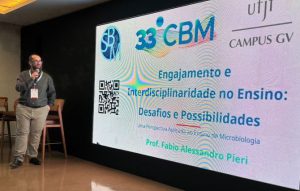 Já a conferência ministrada por Pieri foi sobre engajamento e interdisciplinaridade no ensino. O professor abordou o desafio que representa o tema para os docentes de microbiologia e as possibilidades que as ferramentas e novas abordagens alternativas de ensino podem representar para a compreensão dessa ciência pelos estudantes.