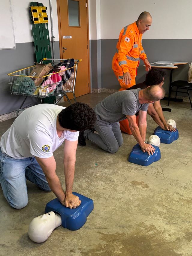 O tenente explicou que a formação é dividida em dois eixos principais: Primeiros Socorros e Combate a Incêndios. “Eles estão sendo capacitados. Se houver um princípio de incêndio no local, como usar os equipamentos que lá já existem, como extintores, hidrantes, etc. Ou se alguém vier passar mal, tiver uma parada cardiorrespiratória, um desmaio, uma queimadura, também que eles saibam como fazer”, detalhou.