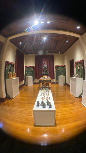 Um dos destaques é um presépio da artista Elisete Silva, oriundo de Nova Era (MG), cujos personagens foram criados a partir de dormentes de trem, peças em madeira colocadas transversalmente sob os trilhos para fixá-los, mantendo o alinhamento e a distância correta. Em cada peça é possível perceber o entalhar mais rústico, justamente pela rigidez da matéria-prima. Também chama a atenção, o presépio indígena brasileiro, obra oriunda de Roraima, em que os personagens possuem características indígenas, trajam vestuários típicos, os presentes dos reis magos são representados pela pesca, caça e frutas, e os animais que compõem a cena pertencem à fauna brasileira, como o jabuti, a anta e a onça-pintada.
