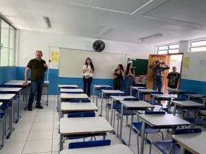 Bolsista acompanhando os alunos em sala da EE Governador Juscelino Kubitschek