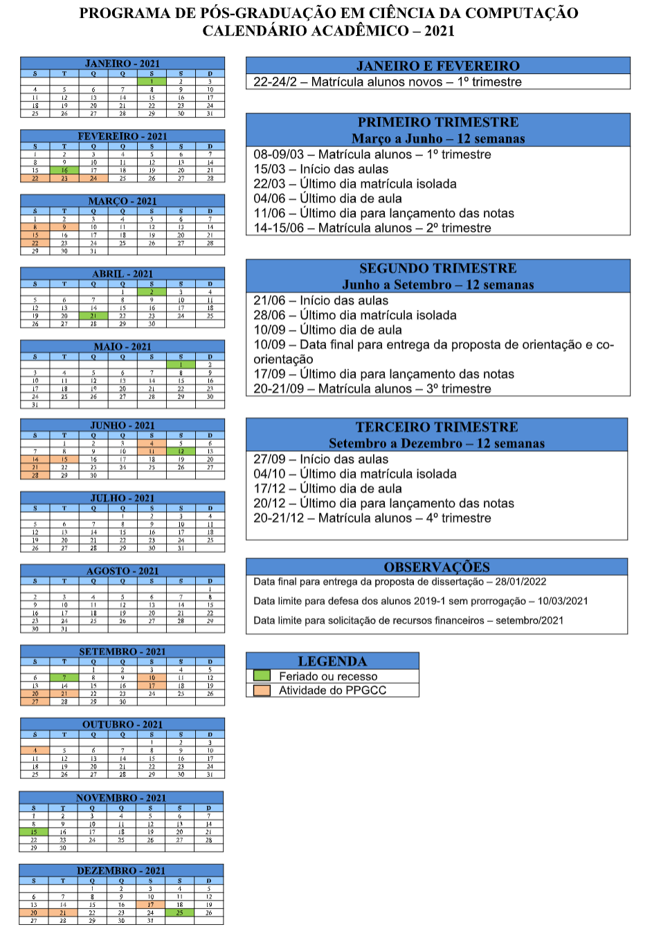 ATENÇÃO: O Calendário pode sofrer alteração a qualquer momento.
