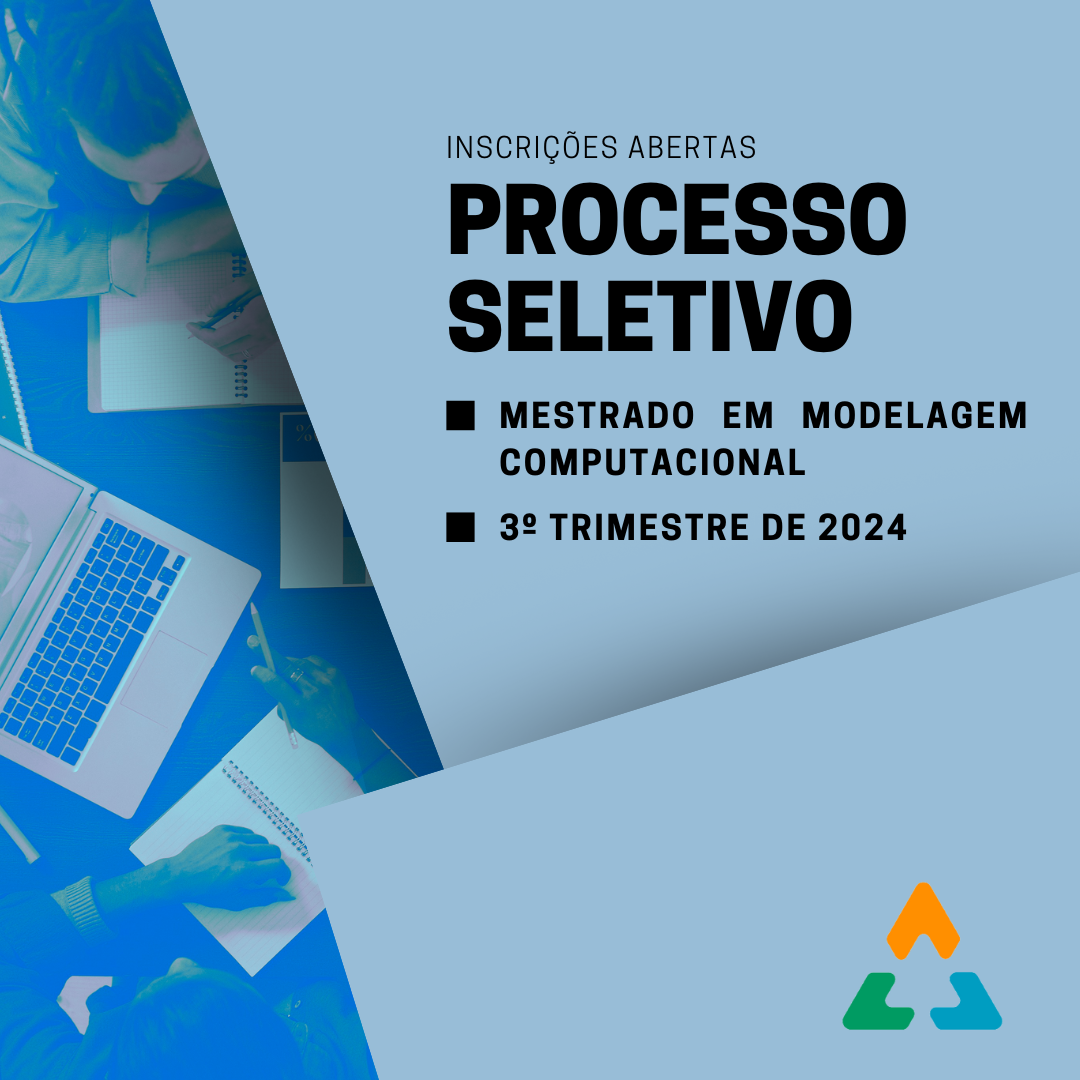 A Coordenação do Programa de Pós-Graduação em Modelagem Computacional (PPGMC) da Universidade Federal de Juiz de Fora (UFJF) torna pública a abertura de inscrições para o processo seletivo para ingresso no Curso de Mestrado em Modelagem Computacional – terceiro trimestre de 2024 (Edital 03/2024). Serão oferecidas até 7 (sete) vagas para o Curso de Mestrado.