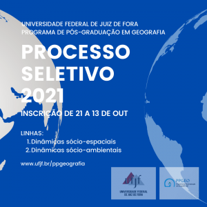 A Coordenação do Programa de Pós-Graduação em Geografia da Universidade Federal de Juiz de Fora torna público os editais de processo seletivo de ingresso nos cursos de Mestrado e Doutorado em Geografia – Turma 2026.