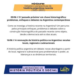 1º Encontro: 9 de junho – O ‘passado próximo’ em chave historiográfica: problemas, enfoques e debates na Argentina contemporânea.