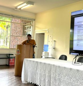 O engenheiro de segurança do Trabalho apresentou as principais ações da Comissão, destacando entre elas: a elaboração da cartilha da Política de Saúde e de Segurança do Trabalho e de Riscos Ocupacionais em parceria com a Diretoria de Imagem; e de formulários de levantamento de necessidades de treinamentos e do diagnóstico das condições dos laboratórios.