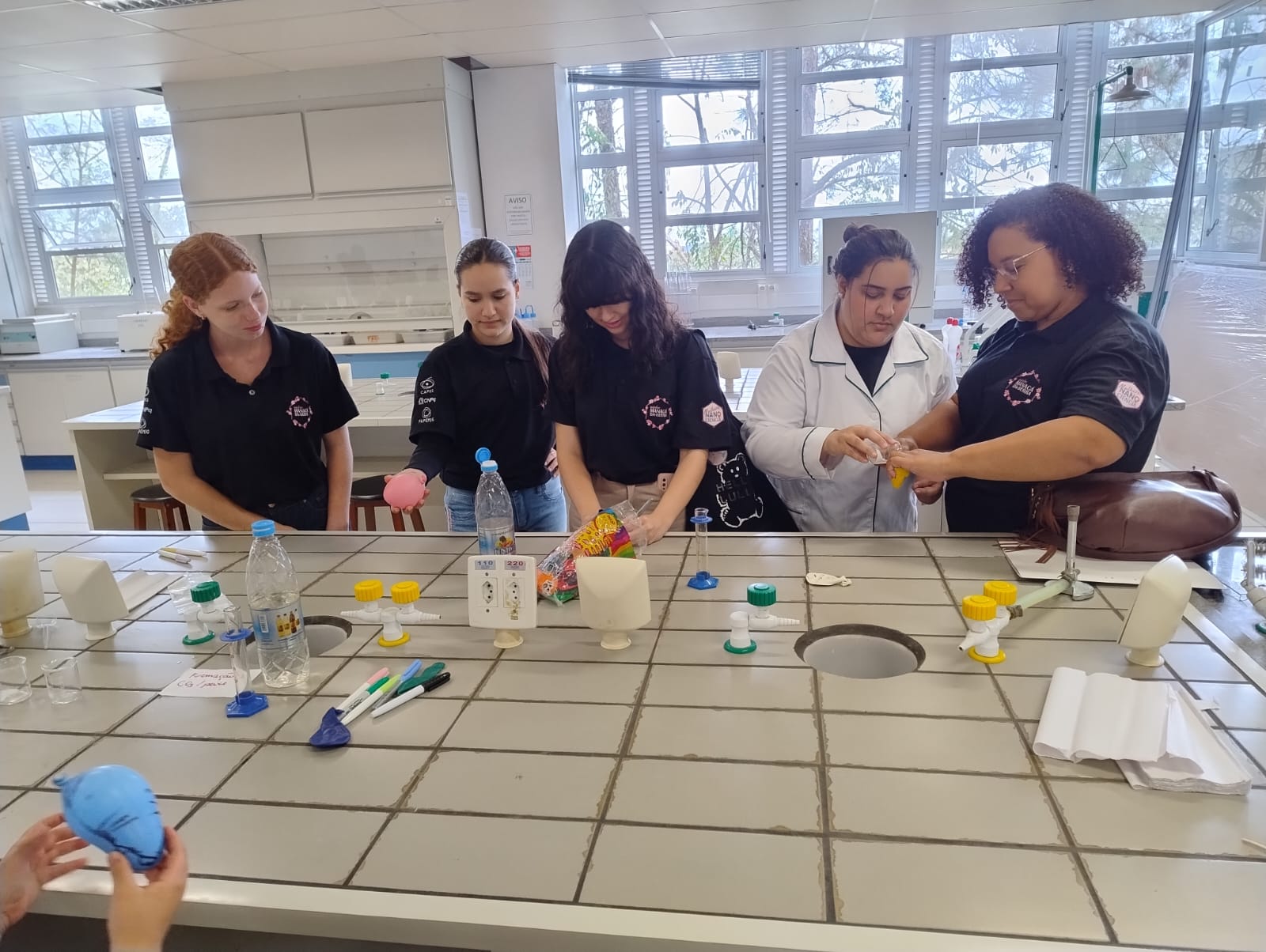 A coordenação do curso de Licenciatura em Química EaD parabeniza as estudantes Ana Mary Francisco da Cruz Matos, Ana Paula Netto da Silva Belinassi, Beatriz da Silva Rocha e Camila Bulho Zuqueto Resende, bem como o tutor Marcones Carvalho de Oliveira, todos do polo de Bicas, pela participação e envolvimento na organização do evento.