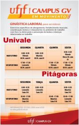 Diante do exposto o SIASS percebeu a necessidade de implantar um projeto que contribuísse com a melhoria da qualidade de vida dos servidores, bem como sensibilizá-los quanto à importância da adoção de um estilo de vida saudável. Portanto, foi criado o projeto UFJF-GV em Movimento em parceria com o Departamento de Educação Física, que consiste na implantação da Ginástica Laboral no âmbito do Campus de Governador Valadares.