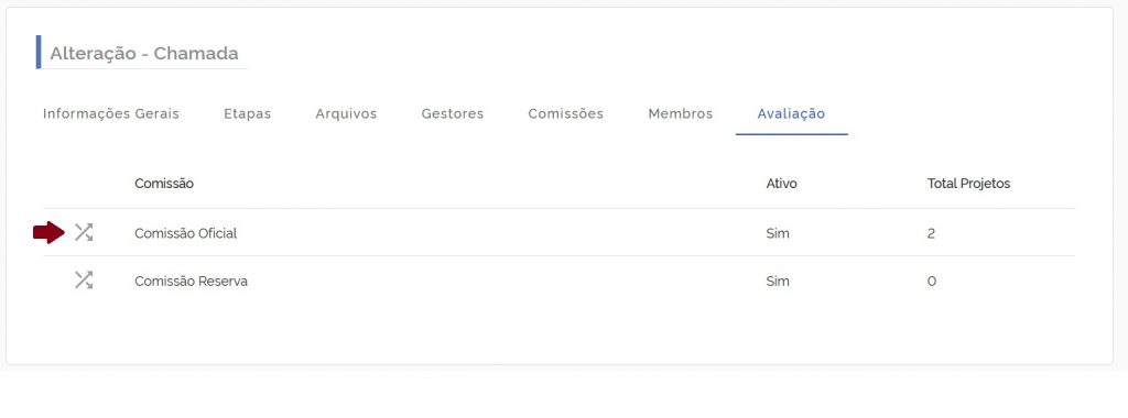 Após o fim da etapa de submissão de projetos, caso a chamada seja configurada como às cegas, você deve realizar o sorteiro: